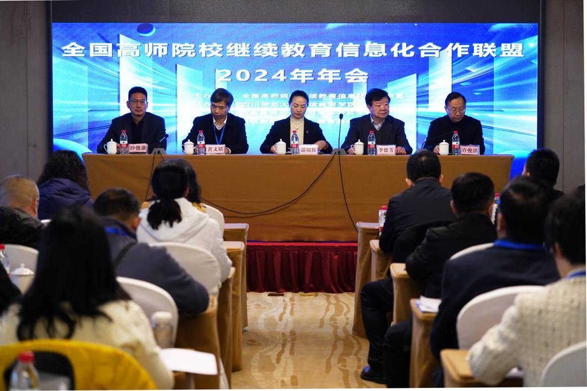 2024年12月25日-12月28日,由全国高师院校继续教育信息化合作联盟主办,四川师范大学继续教育学院、西昌民族幼儿师范高等专科学校和新继教网(北京)教育咨询有限公司共同承办的全国高师院校继续教育信息化合作联盟2024年年会在四川省凉山彝族自治州西昌市盛大召开。教育部职业教育与成人教育司高等继续教育处副处长徐璐,北京师范大学教授、全国高校现代远程教育协作组常务秘书长李德芳,四川师范大学党委常委、副校长郭朝辉,广西师范大学党委常委、副校长黄文韬,中共凉山州委教育工委委员、凉山州教育体育局党组成员、副局长许俊洪,西昌民族幼儿师范高等专科学校党委委员、纪委书记沙德康以及来自哈尔滨师范大学、广西师范大学、河南师范大学、云南师范大学、安徽师范大学、内蒙古师范大学、河北师范大学、江西师范大学等多所高校和联盟秘书长单位新继教网等近百位代表齐聚一堂,共襄盛会。会议由四川师范大学继续教育学院党总支书记张智和内蒙古师范大学继续教育学院院长牛佳主持。