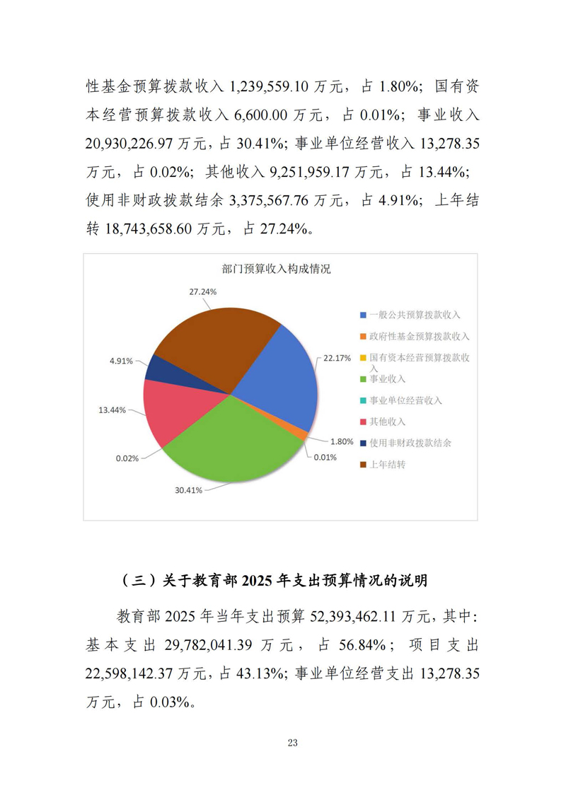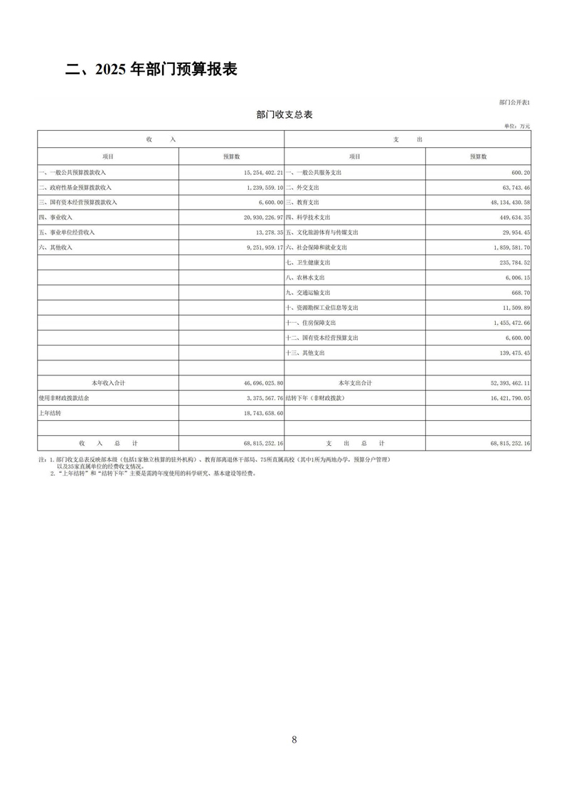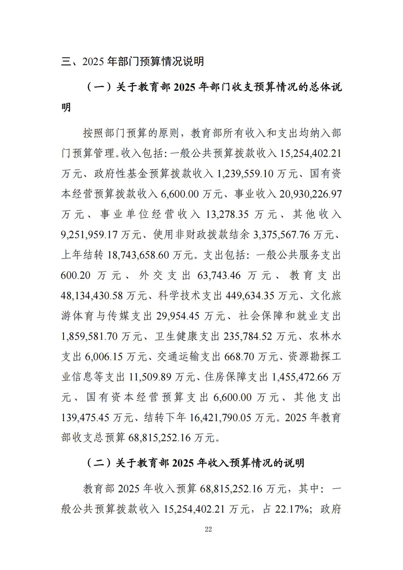 近日,教育部官方网站公布了教育部2025年部门预算。预算文件显示,2025年度收支总预算68,815,252.16万元,支出预算52,393,462.11万元。