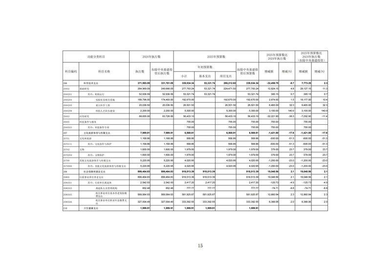 科学技术支出(类)基础研究(款)机构运行(项, 2060201),2025年预算数为53,321.74万元,比2024年财政拨款执行数增加385.15万元。主要原因是科研机构运行支出增加。