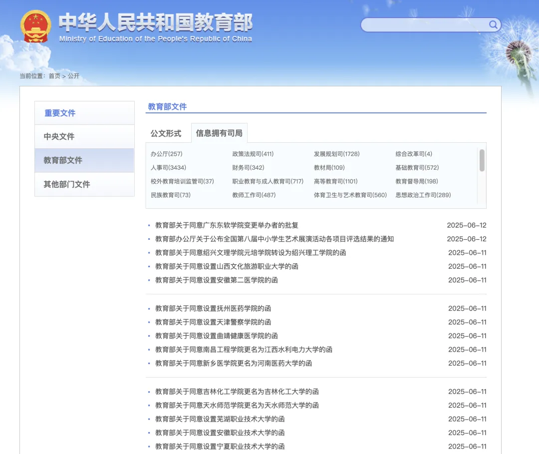 近日,教育部发布《教育部关于同意绍兴文理学院元培学院转设为绍兴理工学院的函》、《教育部关于同意设置山西文化旅游职业大学的函》等32个函件,同意设置绍兴理工学院、山西文化旅游职业大学等32所新大学。
