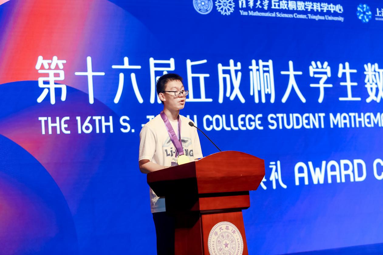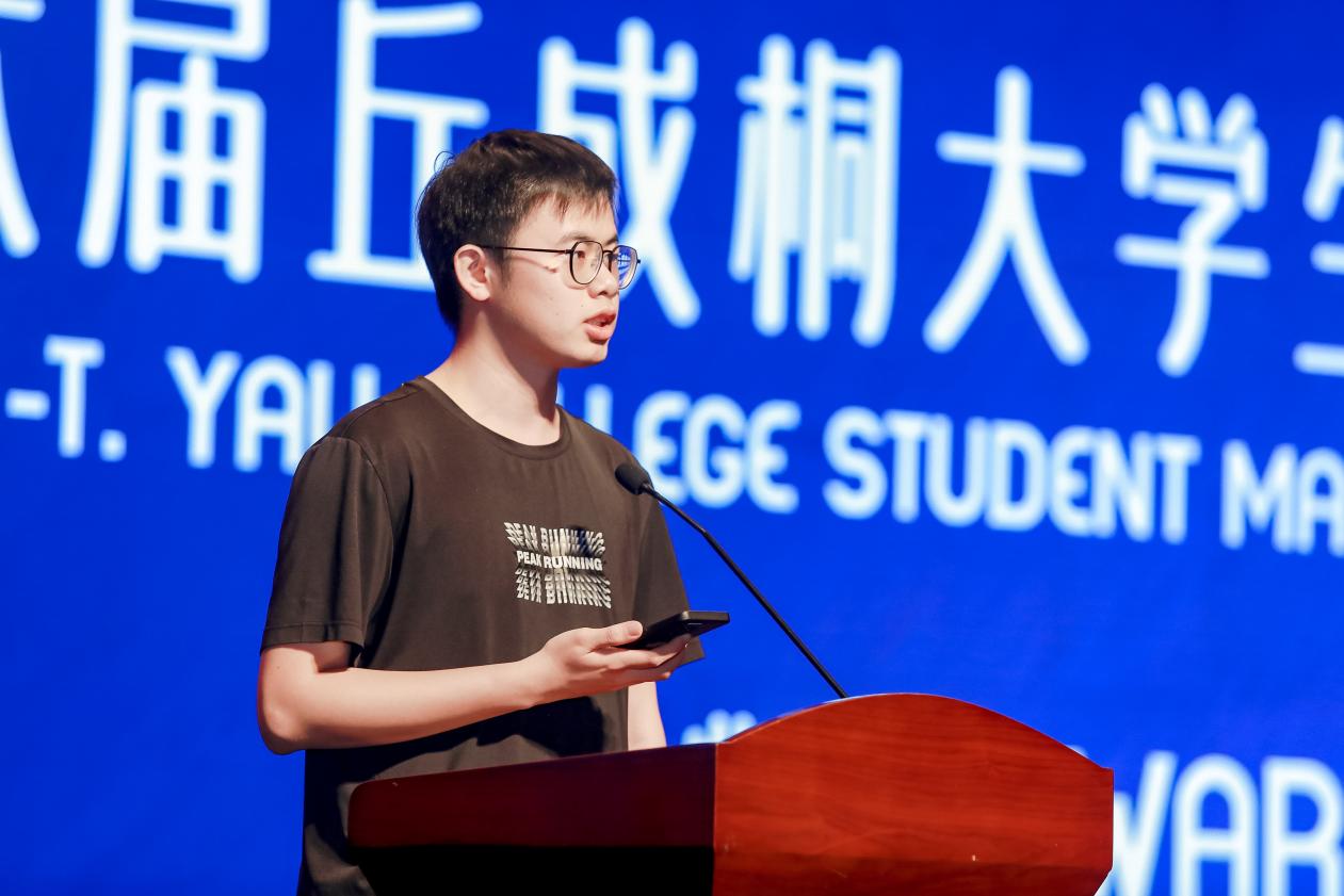 获奖学生代表分享了参赛感悟。清华大学求真书院李宣佑同学认为:“丘赛的独特价值在于它不追求技巧堆砌,而是强调对数学本质的理解和知识体系的融会贯通。”李钒祎表达了对求真书院的感恩之心:“正是书院老师们以渊博的学识和深入浅出的讲解,为我们揭开了数学各个分支的深邃奥秘;而同学们在致远斋里为数学问题热烈讨论、相互启发的日日夜夜,将成为我求学路上最珍贵的记忆。”北京大学数学科学学院的卢均鹏同学表示,丘赛让他感受到数学广阔天地,搭建了一个让学生们既能直面不足,又能绽放青春光彩的舞台。北京大学张研疏表示,数学是一片汪洋大海,一个人的孤舟难免势单力薄,真理的发现从来不是孤独者的游戏,只有一起合作才能赢得未来。