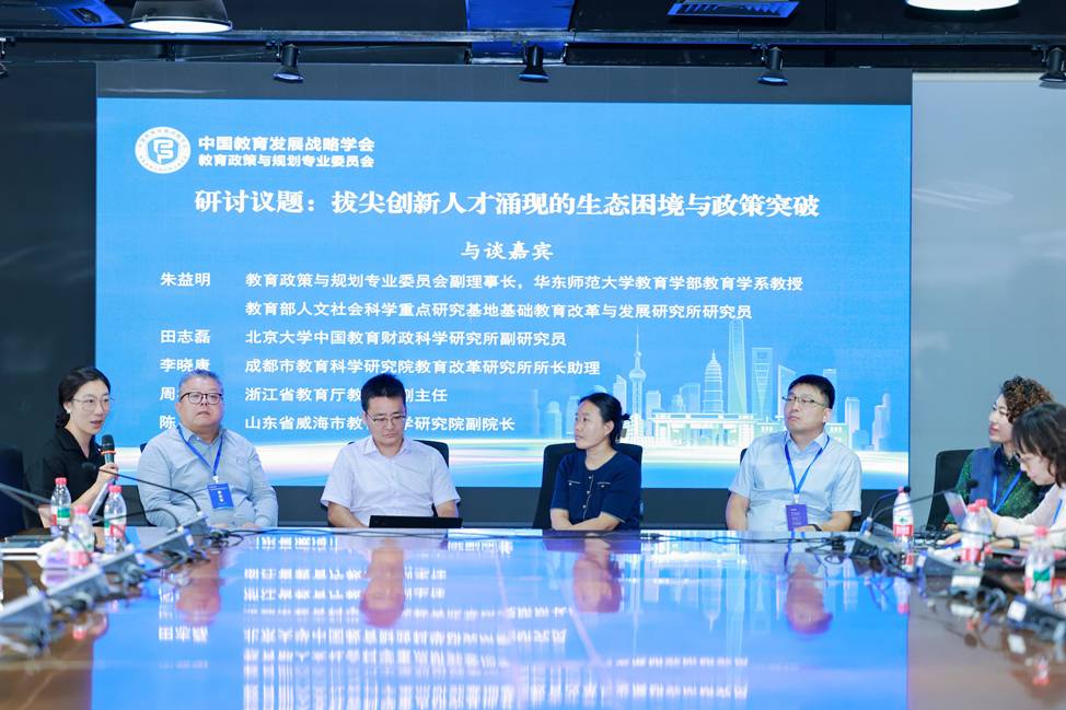 专委会副秘书长、中国发展研究基金会人的发展经济学研究中心副主任赵晨主持“拔尖创新人才涌现的生态困境与政策突破”圆桌研讨。专委会副理事长、华东师范大学教育学部教育学系教授朱益明,专委会学术委员、北京大学中国教育财政科学研究所副研究员田志磊,专委会常务理事、四川省成都市教育科学研究院教育改革研究所所长助理李晓康,浙江省教育厅教研室副主任周华松,山东省威海市教育教学研究院副院长陈梅围绕“拔尖创新人才涌现的生态困境与政策突破”参加讨论。圆桌研讨在尊重儿童个体差异、保护儿童兴趣热爱、供给普惠高质量科学教育资源、因材施教等方面形成了共识。