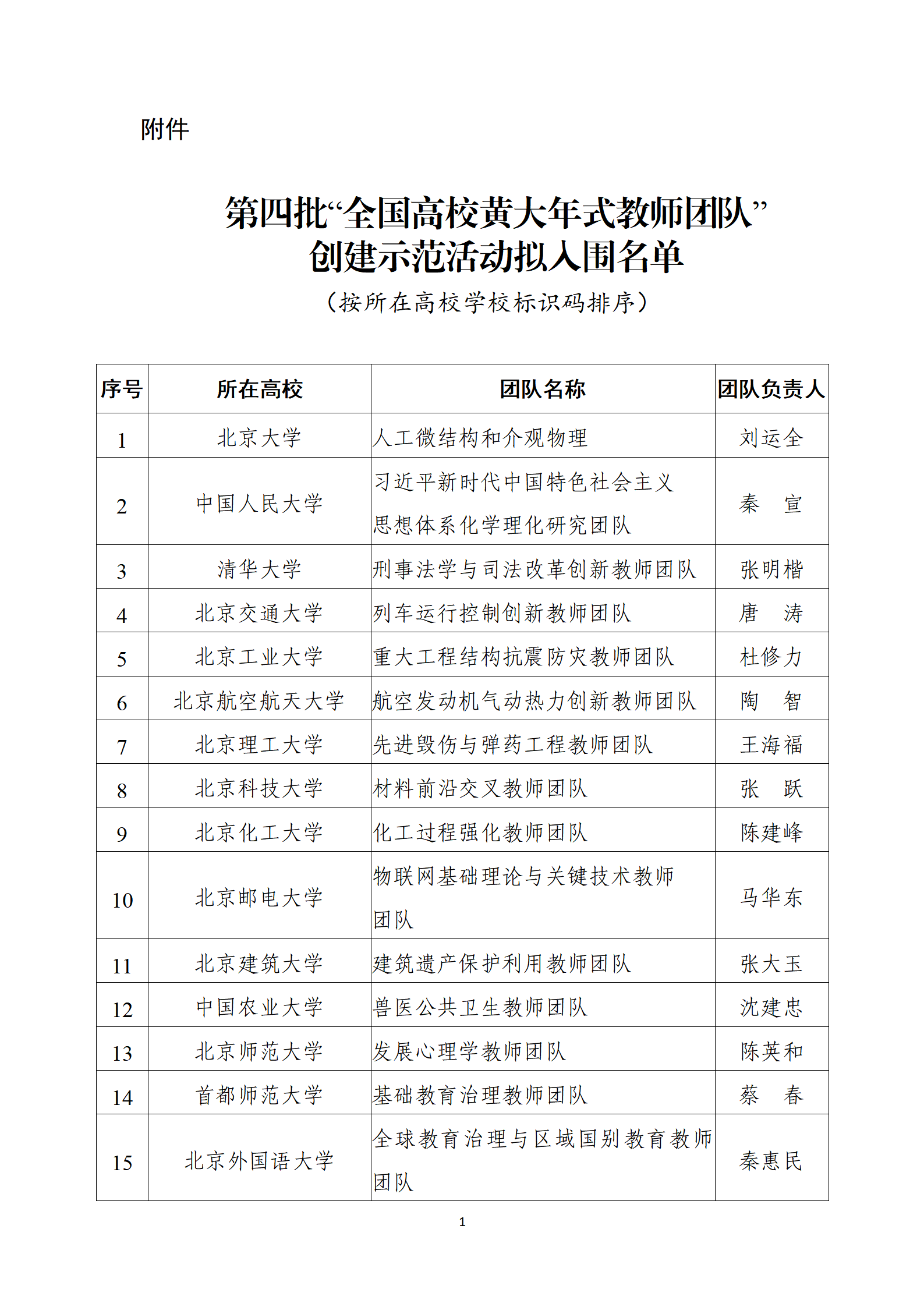 附件:第四批“全国高校黄大年式教师团队”创建示范活动拟入围名单