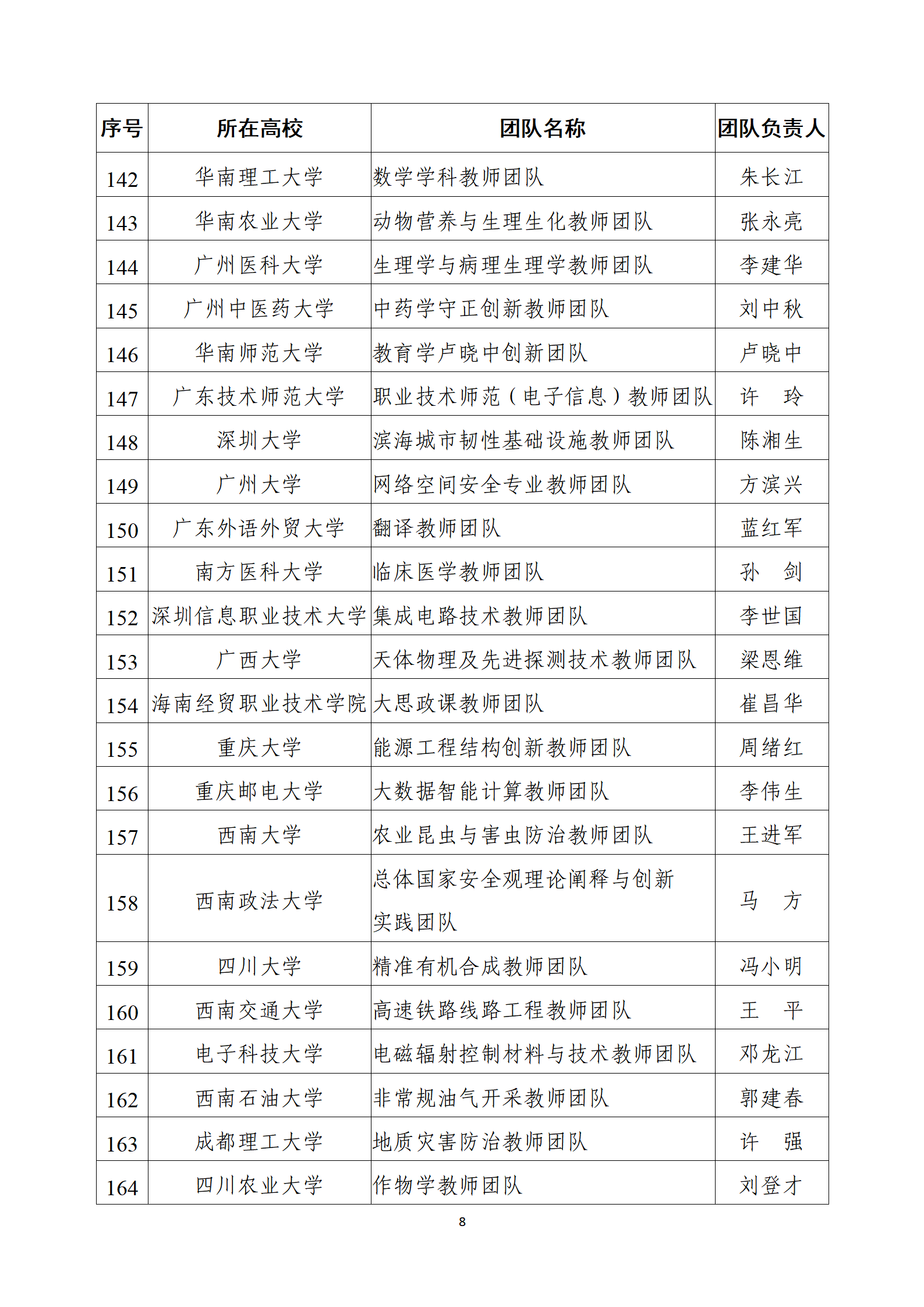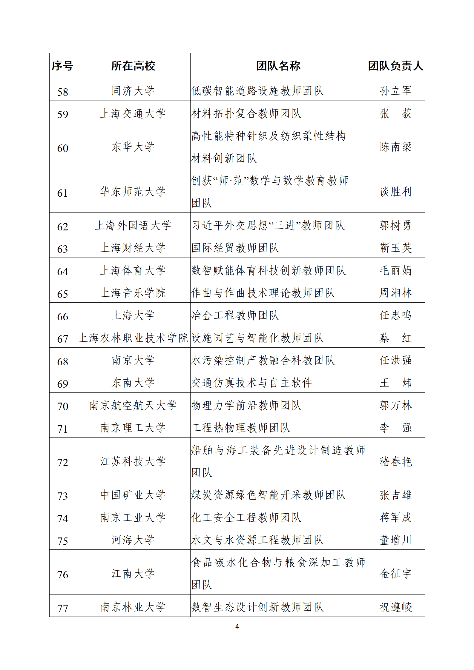 为深入贯彻落实习近平总书记对黄大年同志先进事迹的重要指示和给全国高校黄大年式教师团队代表的重要回信精神,大力弘扬黄大年同志“心有大我、至诚报国”的崇高品格,引导广大教师在加快建设教育强国的新征程中展现更大担当作为,根据《教育部关于开展第四批“全国高校黄大年式教师团队”创建活动的通知》(教师函〔2025〕2号)要求,经自主申报、逐级遴选、专家评审等环节严格把关,拟确定第四批“全国高校黄大年式教师团队”(见附件),现予以公示。