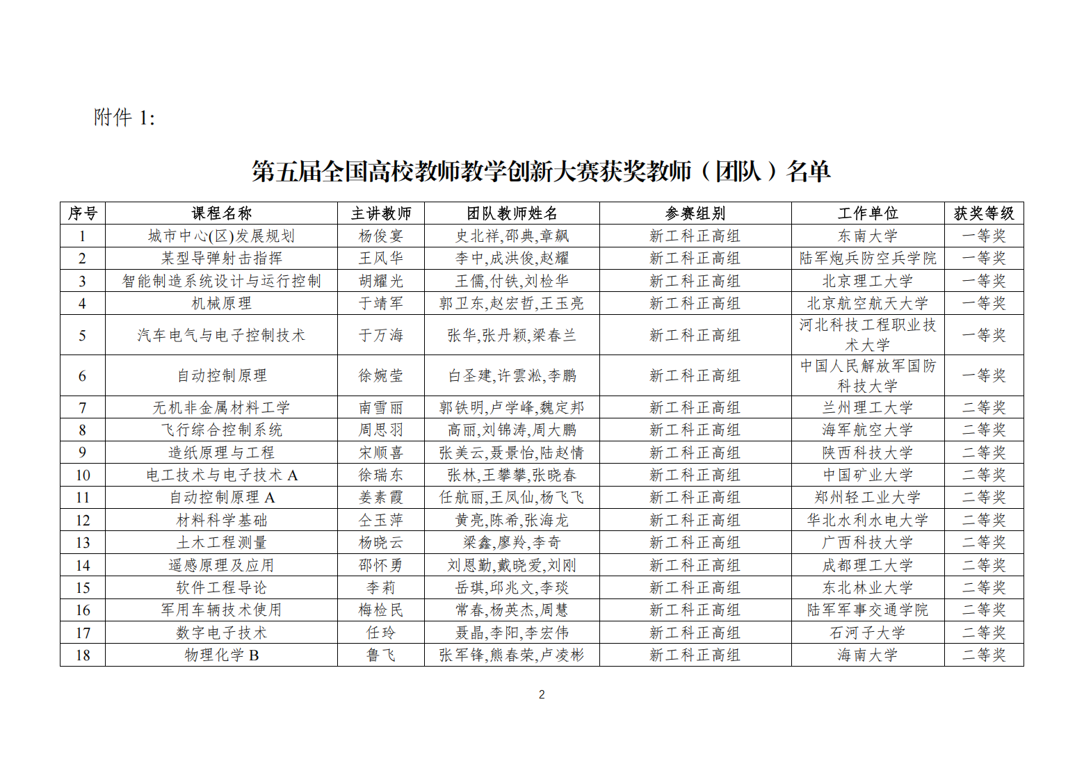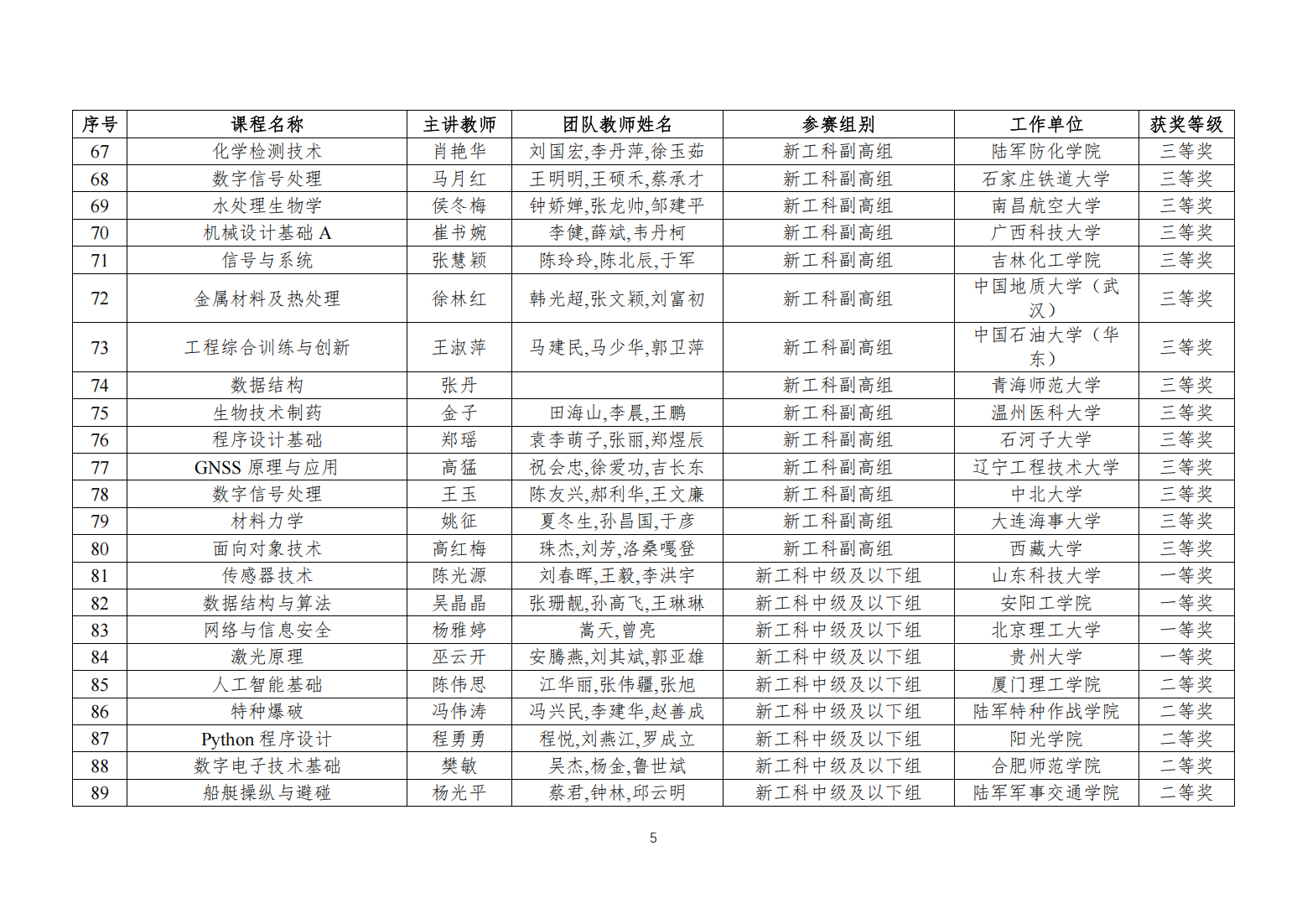 关于公布第五届全国高校教师教学创新大赛获奖名单的通知