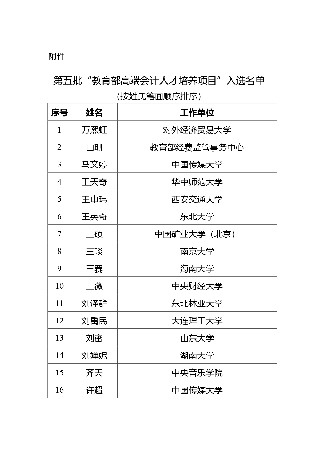 教育部公示第五批高端会计人才培养项目选拔结果