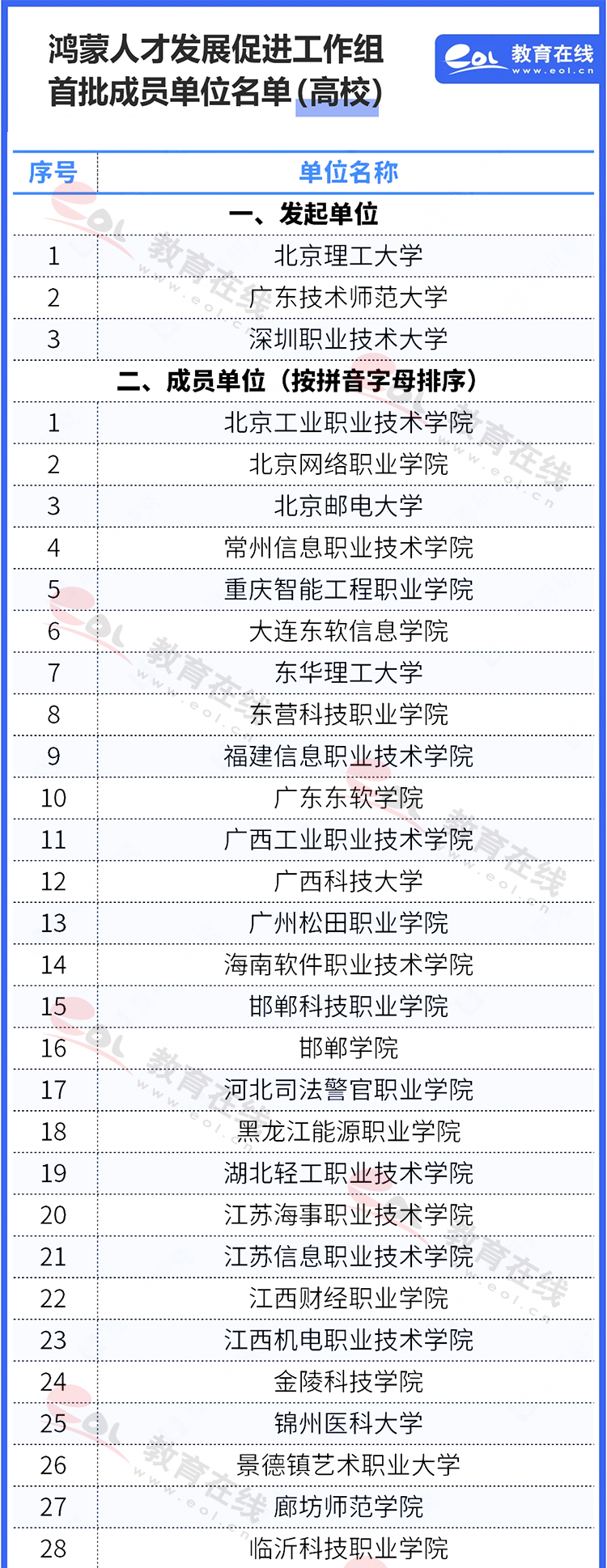 鸿蒙人才发展促进工作组首批成员单位名单(高校部分)