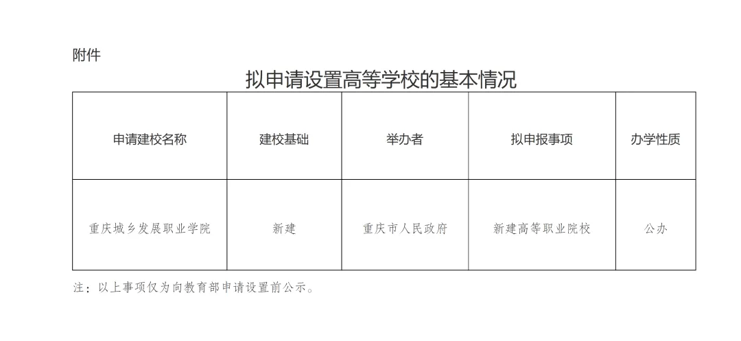 2月10日,重庆市教委网站发布关于拟申请设置高等学校的公示。
