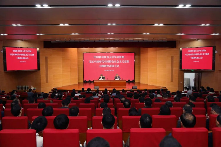 主题教育开展以来,校党委坚持把“学思想”作为重中之重,校领导班子举办为期7天的读书班集中学习研讨,班子成员静心学习、沉心思考、潜心感悟,做到用党的创新理论武装头脑、指导实践、推动发展,示范带动各院级党组织精心办班学、专题研讨学,组织处级以上领导干部一篇一篇读、逐段逐句悟,做到学深悟透、入脑入心。校党委把习近平总书记最新重要讲话精神作为“第一议题”学习重要内容,校党委理论学习中心组开展15次集中学习会,重温习近平总书记关于中国科大系列重要指示精神,学习领会习近平总书记关于党的建设的重要思想,集中学习习近平总书记关于以学铸魂、以学增智、以学正风、以学促干等重要论述,以及习近平总书记在中共中央政治局第五次集体学习、文化传承发展座谈会等重要讲话,赴省党风廉政教育馆、渡江战役纪念馆开展现场教学,进一步筑牢信仰之基、补足精神之钙、把稳思想之舵。舒歌群带头讲授专题党课,党员校领导面向联系单位或所在党支部讲授专题党课,结合工作实际谈认识、谈收获,交流运用党的创新理论解决实际问题的具体案例和体会,提出改进工作的思路措施。