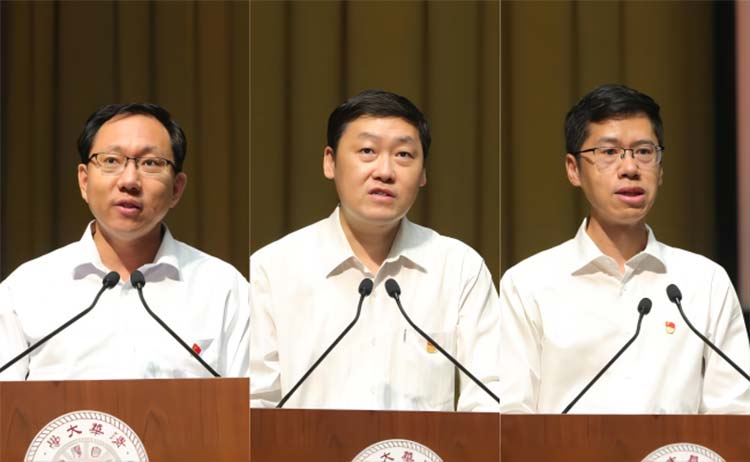 会上,航天航空学院党委书记王兵,法学院党委书记邓海峰,党委学生部副部长、学工党委副书记张翀作交流发言,分享所在单位以高质量主题教育推动高质量发展的实践与思考。