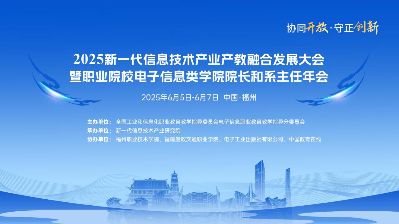 本届产教融合大会由新一代信息技术产业研究院承办,由福州职业技术学院、福建船政交通职业学院、电子工业出版社有限公司、中国教育在线共同协办,并于同期举办了全国工信行指委电子信息分委会2025年度工作会议和“新一代信息技术产业产教融合成果推荐活动”,以及ai赋能·产教共生:数智驱动产教适配双向赋能专题论坛、聚焦“十五五”规划职业教育金教材金课程建设创新发展专题论坛,再次取得了丰硕的交流对接成果。