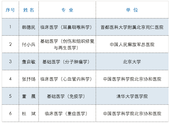 第七届树兰医学奖初评结果名单(共6人)