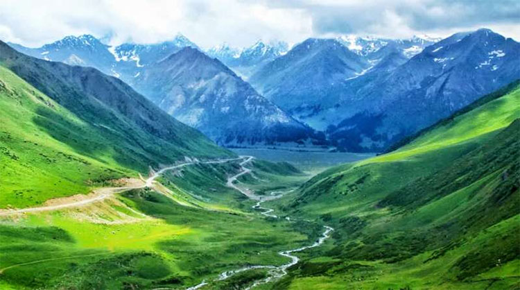 在这条公路上,一日见四季,十里不同天,冬夏浑然一体:刚刚穿行鸟语花香的丛林草原,转瞬便跨越冰点以下的雪山之巅。
