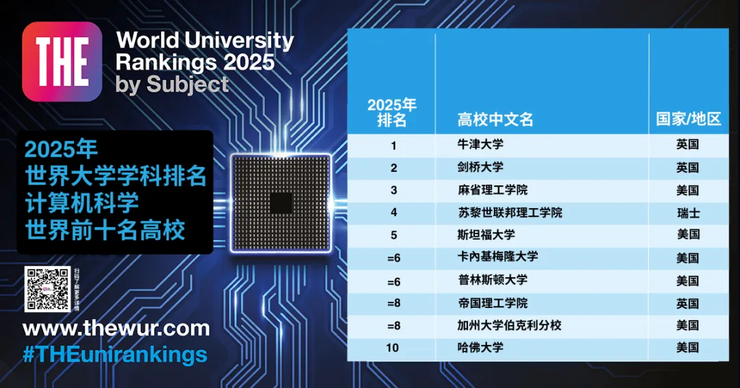 在2025年泰晤士高等教育世界大学学科排名中,美国麻省理工学院和斯坦福大学遥遥领先。两所高校在三个学科排名中均名列前茅。