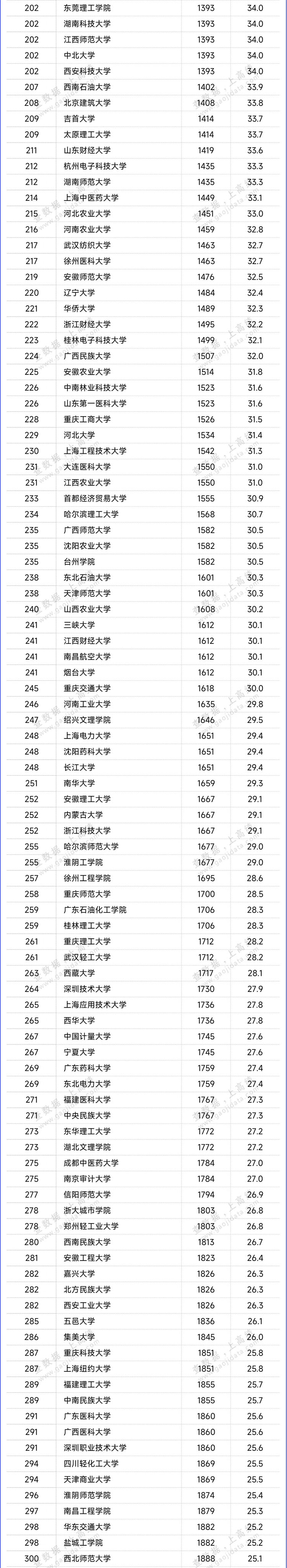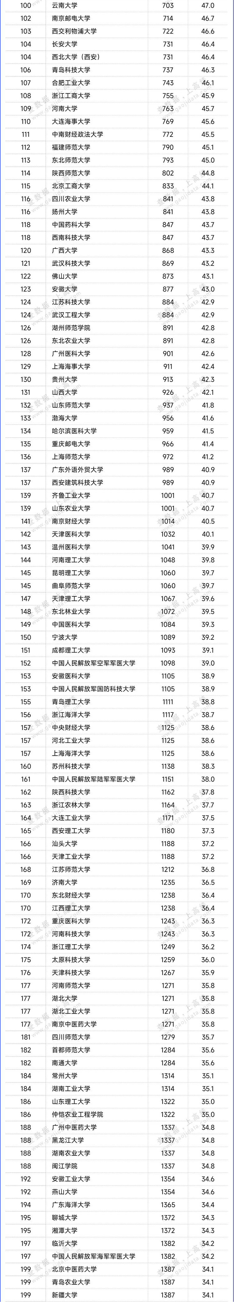 中国内地高校共有397所高校上榜,11所进入百强。清华大学跻身全球前20,位列全球第11。北京大学、浙江大学和上海交通大学进入前50,分别位列全球第25和全球第45、全球第46。全球前100的中国内地高校还有中国科学院大学(全球第54)、复旦大学(全球第70)、中国科学技术大学(全球第71)、中山大学(全球第85)、南京大学(全球第86)、武汉大学(全球第90)、华中科技大学(全球第91)。