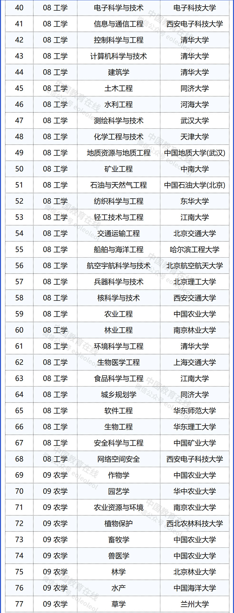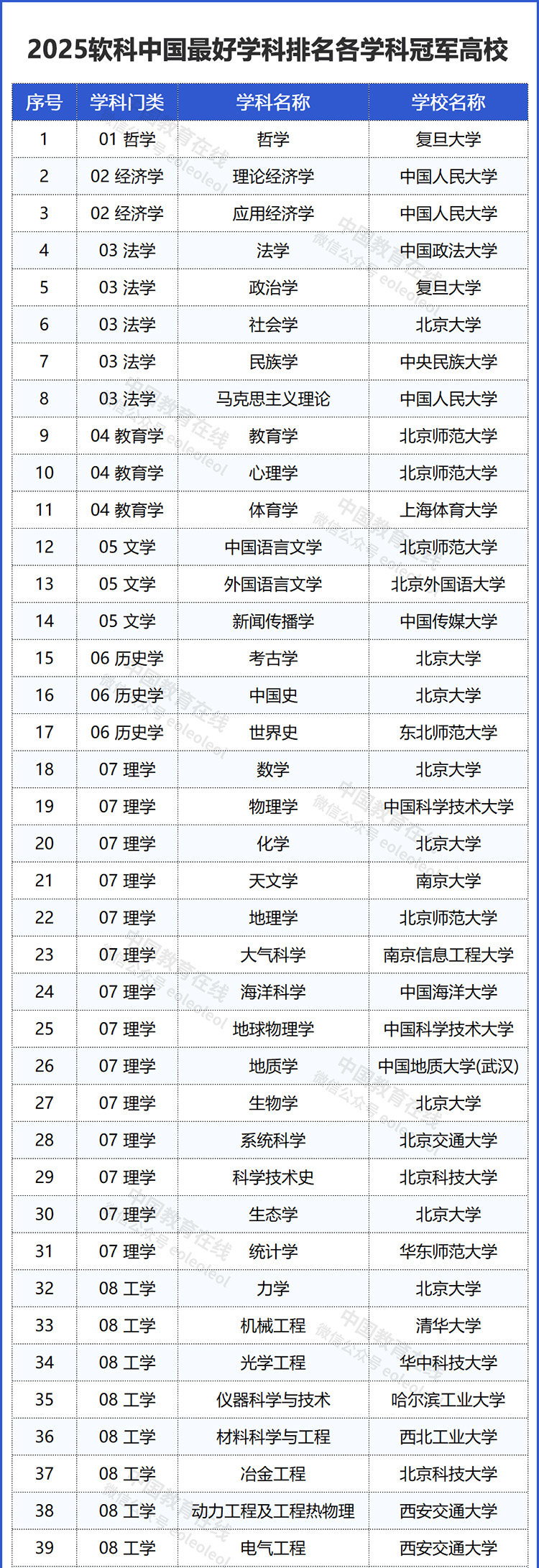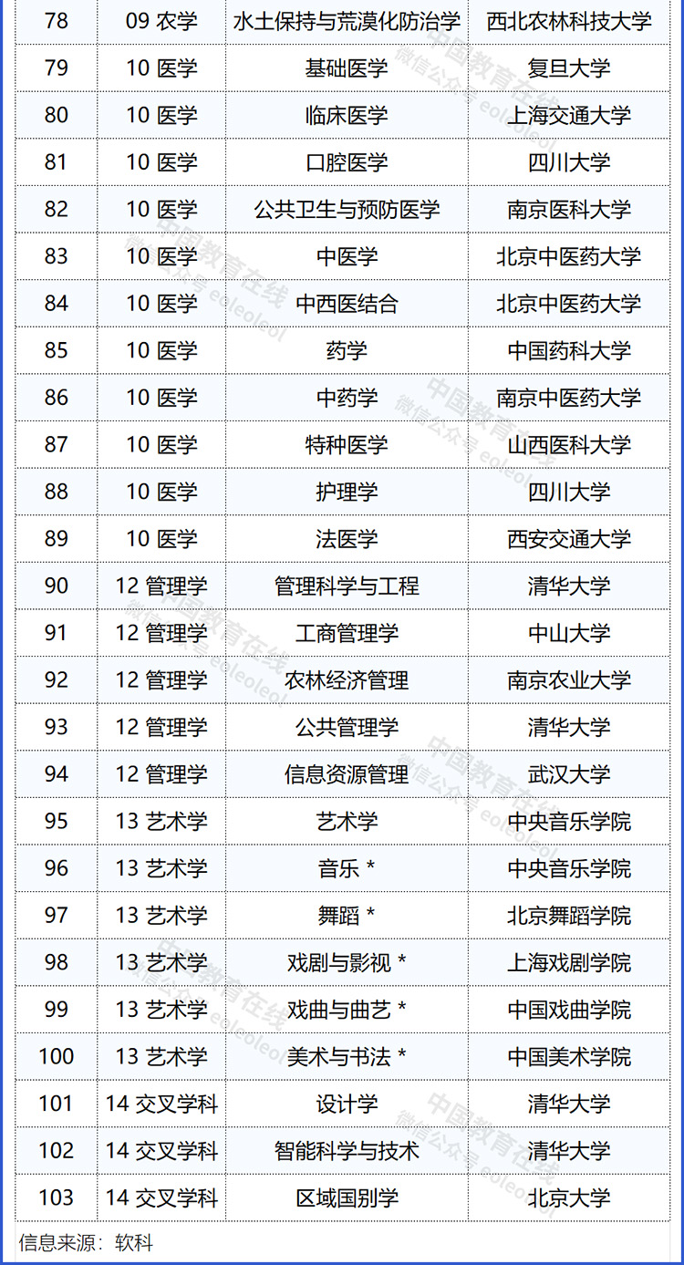 2025软科中国最好学科排名发布,各学科冠军高校名单出炉