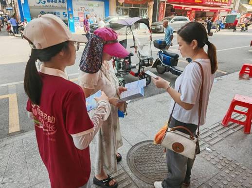起初,“贷款”二字让不少村民心生警惕,常遭“没钱贷啥款”的拒绝,问卷上“不清楚”“没听过”成高频词。队员发现,政策陌生感与“贷款”心理负担是主要障碍。调整方式后,队员们回到市集,蹲在菜摊旁、站在货架边,用通俗语言拆解利好:“上学时利息国家付,毕业有缓冲期还本金,专门帮娃圆读书梦!”耐心沟通逐渐消除隔阂,队员们顺势邀约村民7月17日到镇中心广场详询政策,“去广场问政策”成了乡邻间的温暖约定。