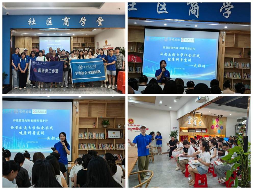 随着社会经济的日益发展和人民生活水平的提高,肥胖和超重作为多种慢性病的高发因素,已成为影响全民健康的重大公共卫生问题。2024年6月,国家卫健委印发“体重管理年”活动实施方案,旨在提升全民体重管理意识和技能。为响应国家对于体重管理新号召,推动居民重视体重管理、改善体重状况。2025年7月21日,西安交通大学“青医先锋”社会实践团队前往成都市区,开展实践第一阶段以“科普 调研 红色”为主题的丰富实践,以医学生的责任担当,开展科普宣传、服务基层群众、助力健康中国建设。