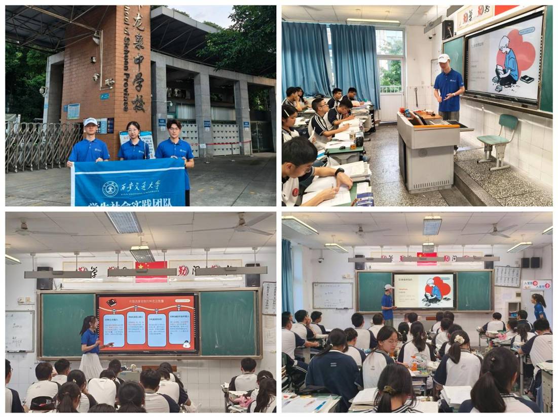 实践队员在成都市龙泉中学进行健康科普宣讲和学校介绍