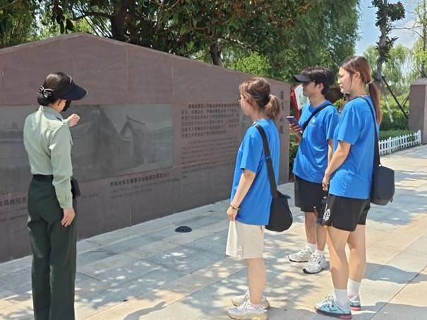 团队成员认真听取讲解员介绍旧址历史。秦劲供图