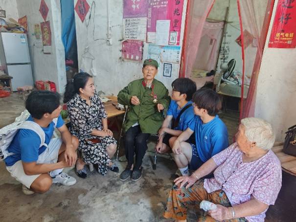 在王寨镇退役军人服务站刘敏站长带领下,实践团有幸拜访到了94岁抗美援朝老兵郭吉宣。1951年入朝作战的他,曾在沙里院车站冒死抢运物资。“炸弹埋住我时,以为要光荣了……”讲述被战友从弹坑救出的经历,老人泪光闪烁。停战后,郭老继续驻防朝鲜东海岸挖进行军事训练和建造防空设施,于1956年离开朝鲜回国,1958年复原回乡。刘敏站长说到,“让退役军人成为全社会尊重的人,让军人成为全社会尊崇的职业,让退役军人有更多的获得感、归属感、荣誉感和幸福感”。从政策落地的 “最后一公里” 到生活冷暖的 “细微之处”,王寨镇退役军人服务站用实打实的行动为退役军人撑起一片晴空。