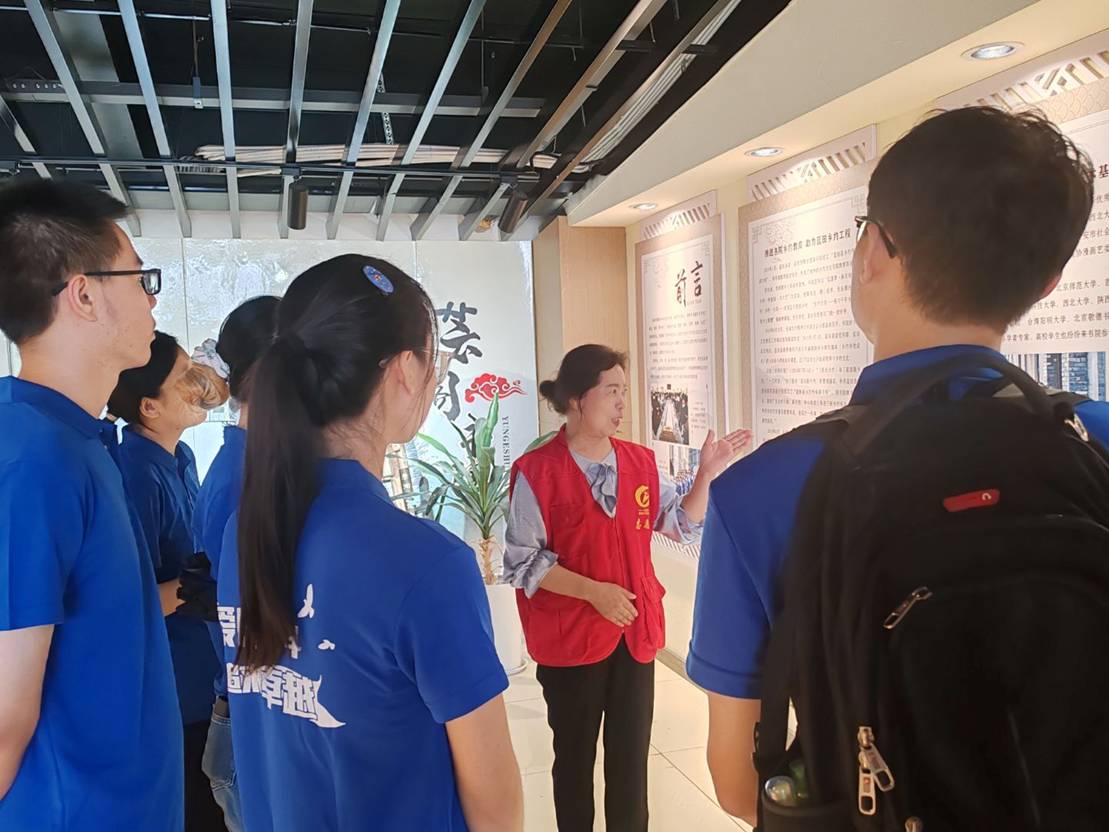 8月1日,晨光初现。团队首站抵达蓝田新城社区党群服务中心。三载校地合作的厚重成果在展柜中无声述说,而崭新的支教义诊计划在座谈中孕育成形。午后,文化馆的木门吱呀开启,这座“历史的长卷”徐徐展开。在讲解员引导下,学子们穿梭于三大展区:党政学习区回荡时代强音,历史文化区则如一幅徐徐展开的文明长卷。华胥氏传说承载先民记忆,宋明理学浸润着哲思光辉,十二项地域文化瑰宝共同勾勒出蓝田独特的文明肌理。文化馆不仅是历史的保管者,更是当下文明实践的枢纽——这里持续举办革命教育、书画展览,让文化血脉在当代生活中汩汩流淌。