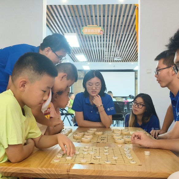 8月4日的开营仪式,美育课堂便成为文化传承的生动注脚。当彩纸在孩子们指尖翻飞,幻化为灵动的折纸作品;当象棋的古老智慧被稚嫩的手掌破解,教室里的惊叹与眼中闪烁的光芒,正是传统文化在幼小心灵中悄然生根的印记。这些瞬间,无声诉说着艺术启蒙的力量——传统并非尘封的过往,而是滋养创造力的沃土。