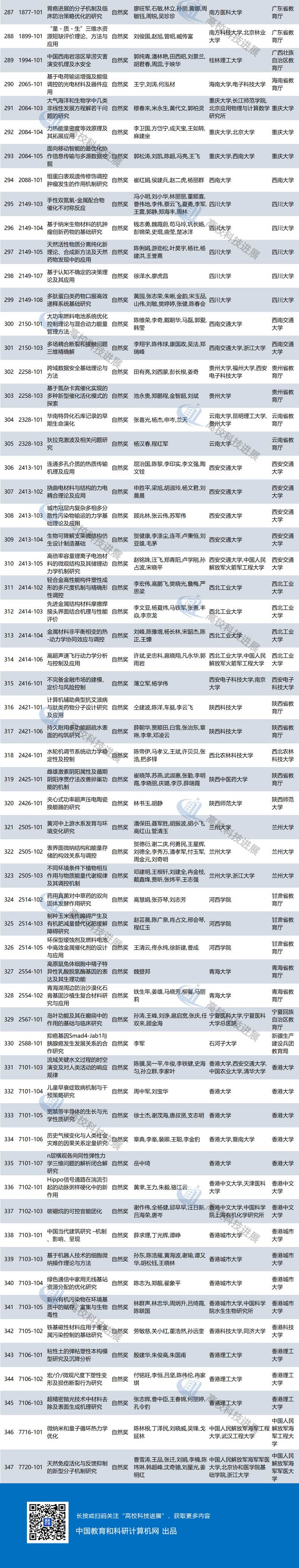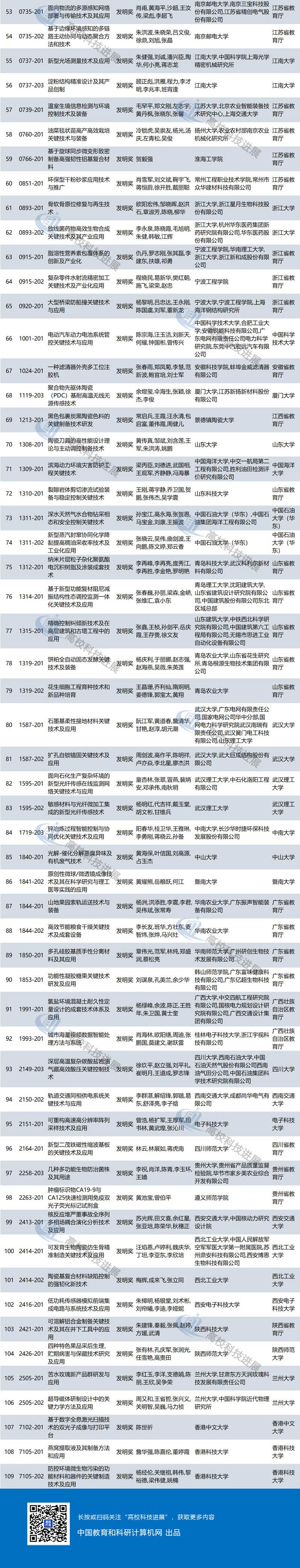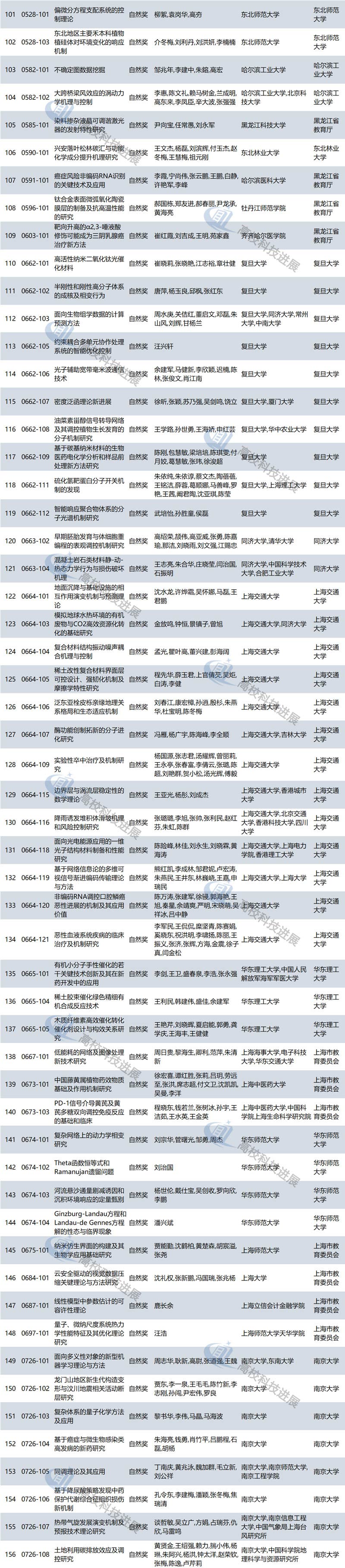 科学技术进步奖共有422项(通用项目406项,专用项目16项)形式审查合格。在通用项目的统计结果中,共有167所高校以第一完成单位牵头的项目通过审查。形式审查合格项目较多的高校分别是上海交通大学16项,浙江大学14项,同济大学10项,江南大学9项,北京协和医学院、东北大学和中国石油大学(华东)均为8项,北京大学、清华大学、武汉大学和中国矿业大学各有7项,北京科技大学、东南大学、中南大学、首都医科大学、江苏大学分别有6项,北京林业大学、中国矿业大学(北京)、中国医科大学、河海大学、中国海洋大学、华中科技大学、中山大学、华南理工大学、中国人民解放军海军军医大学以及五邑大学各有5项。