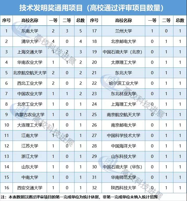 从科学技术进步奖通用项目的会议评审结果来看,共有68所高校推荐项目通过评审,获通过项目的高校数量与自然科学奖相差无几。