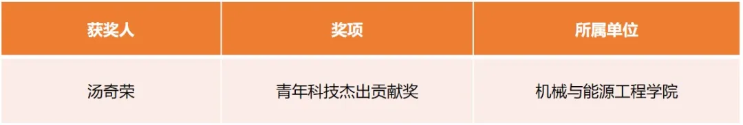 机械与能源工程学院教授汤奇荣长期从事复杂极端使役环境集群无人系统的研究,研制多款国产自主可控硬工无人系统,相关技术应用于空间微重力、陆地强对抗、水下信息强受限等环境,助力我国复杂极端使役环境集群无人系统技术的突破和落地应用,获青年科技杰出贡献奖。