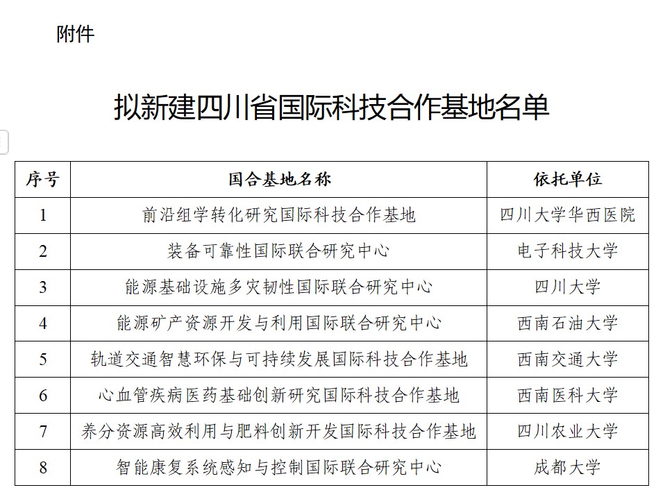 四川省科学技术厅关于拟新建四川省国际科技合作基地的公示