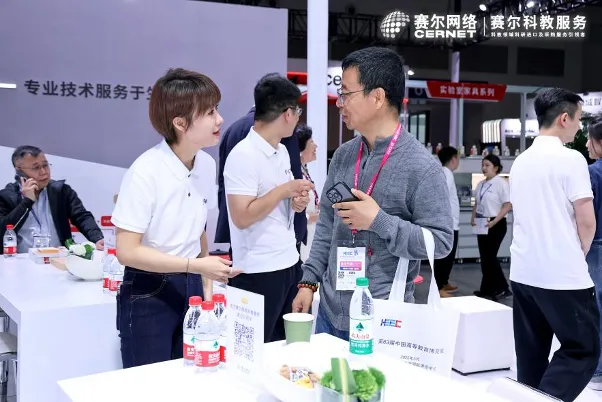 “赛尔科教服务以科学的流程规范、专业的培训指导立基,以完善的属地化管理立柱,搭建起全国31个分公司组成的赛尔科教服务体系,以足够专业、足够高效、足够热忱、足够诚信的服务理念伴客户前行”,赛尔科教服务展区工作人员向前来参观的众人介绍道。
