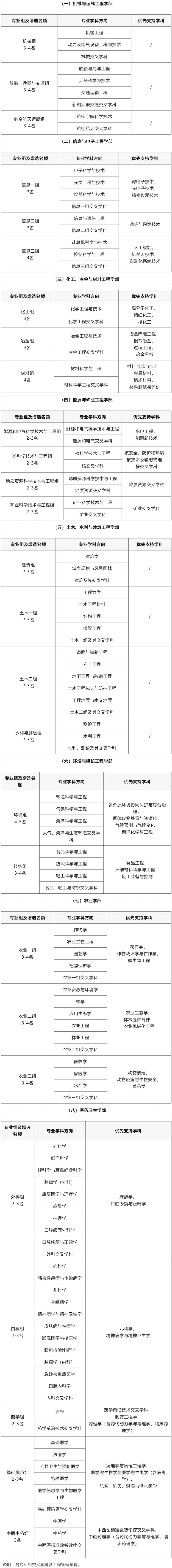 一、增选领域学科方向和名额分配方案
