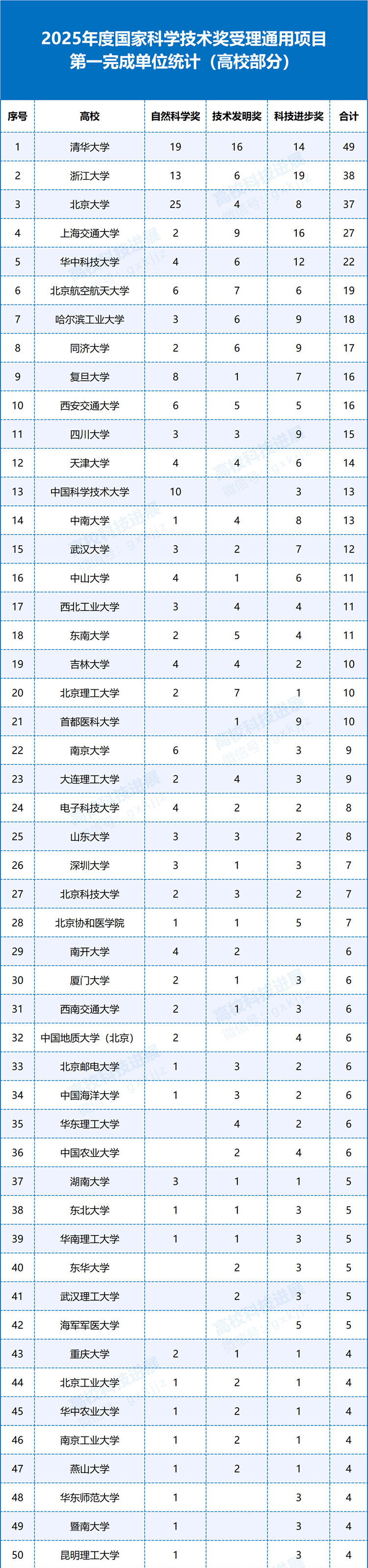 (注:以上表格仅统计受理通用项目的第一完成人所在单位或第一完成单位,各高校附属医院、附属机构等纳入所属高校统计,表格内容为人工整理,如有遗漏,请以实际为准。)