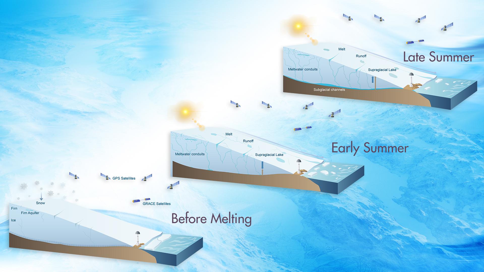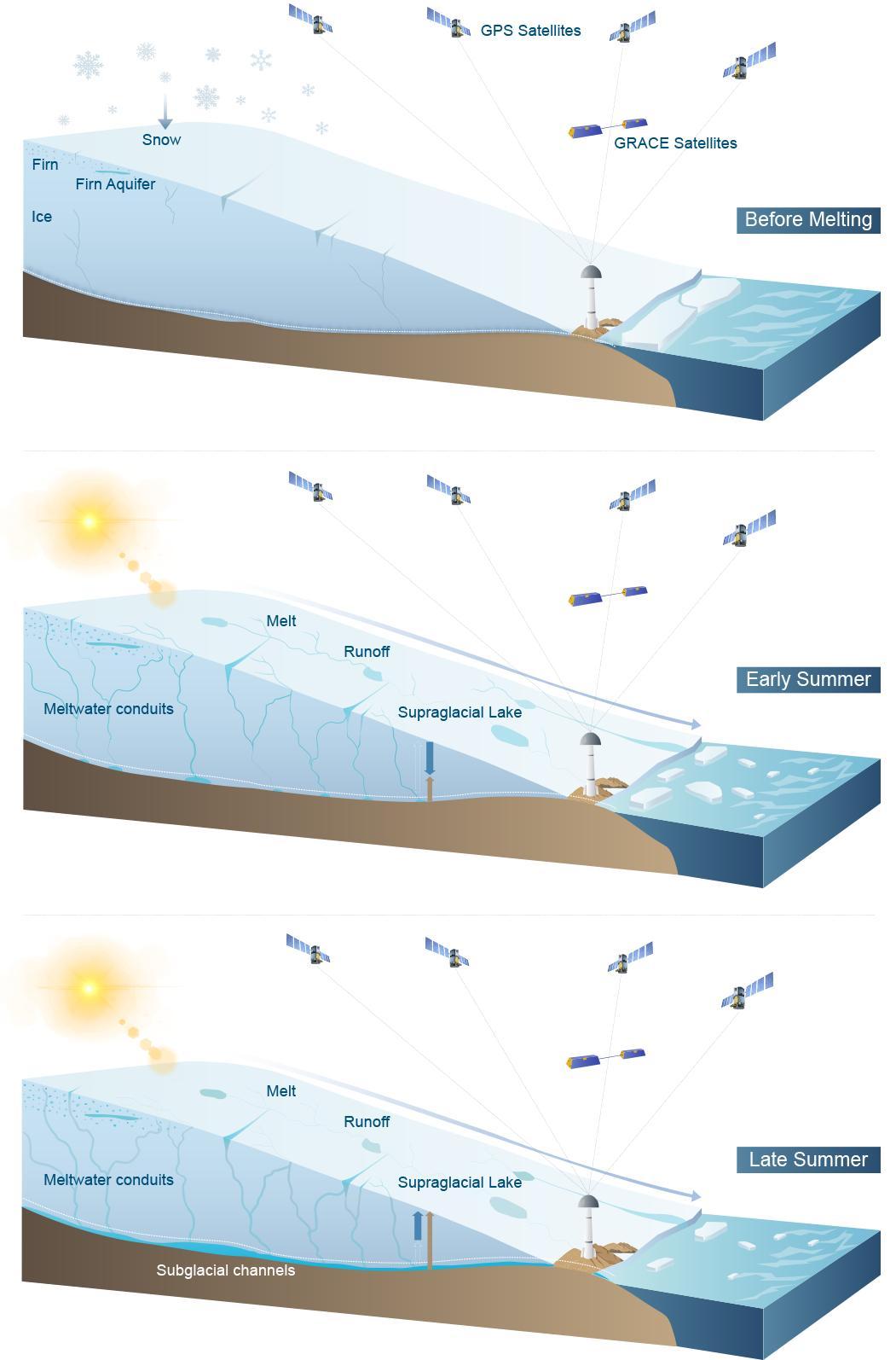 该发现为研究融水在冰川内部和底部的演化提供了前所未有的视角,有利于提高冰川模型的可靠性,降低由全球变暖导致的未来海平面上升的预测误差。