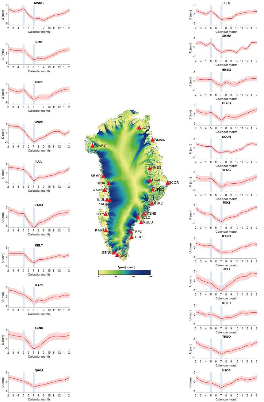 图2 gnss站点测量的残余垂直位移的平均年度周期