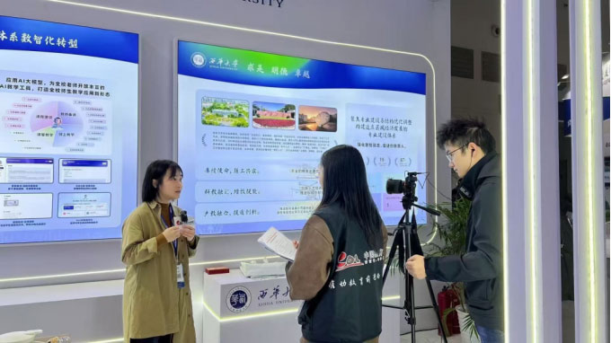 西华大学参加本届高博会旨在展示学校积极响应国家教育数字化战略行动,西华大学教务处副处长兼教师教学发展中心主任刘雪梅谈到,此次主要展示学校数字化创新知识中心和整体数智化资源建设在教学和管理中的应用与示范。