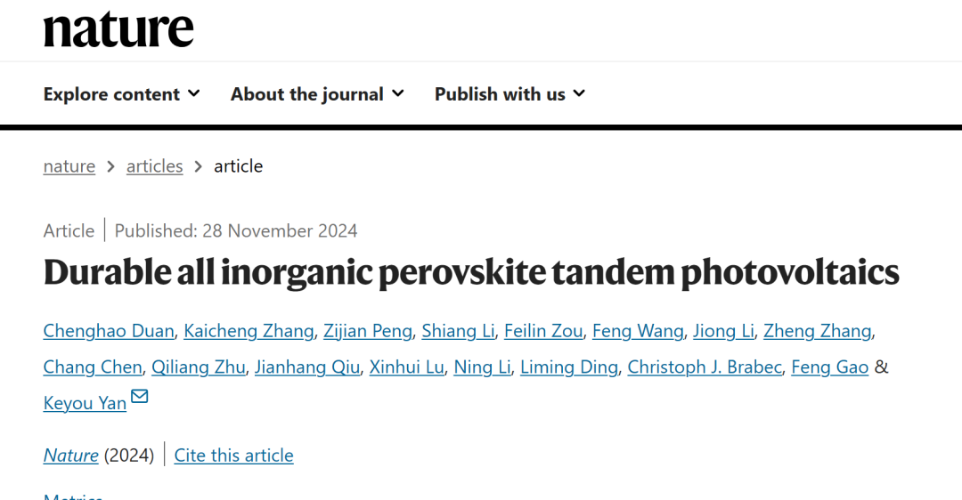 华南理工大学严克友教授团队针对钙钛矿电池光热稳定性差的行业难题,利用绿色配体演变策略,调控全无机窄带隙钙钛矿薄膜的成核结晶,成功制备了全球首个2端全无机钙钛矿叠层电池,85 ℃光热稳定性老化测试表现良好。相关成果以“durable all inorganic perovskite tandem photovoltaics”为题发表在nature上。