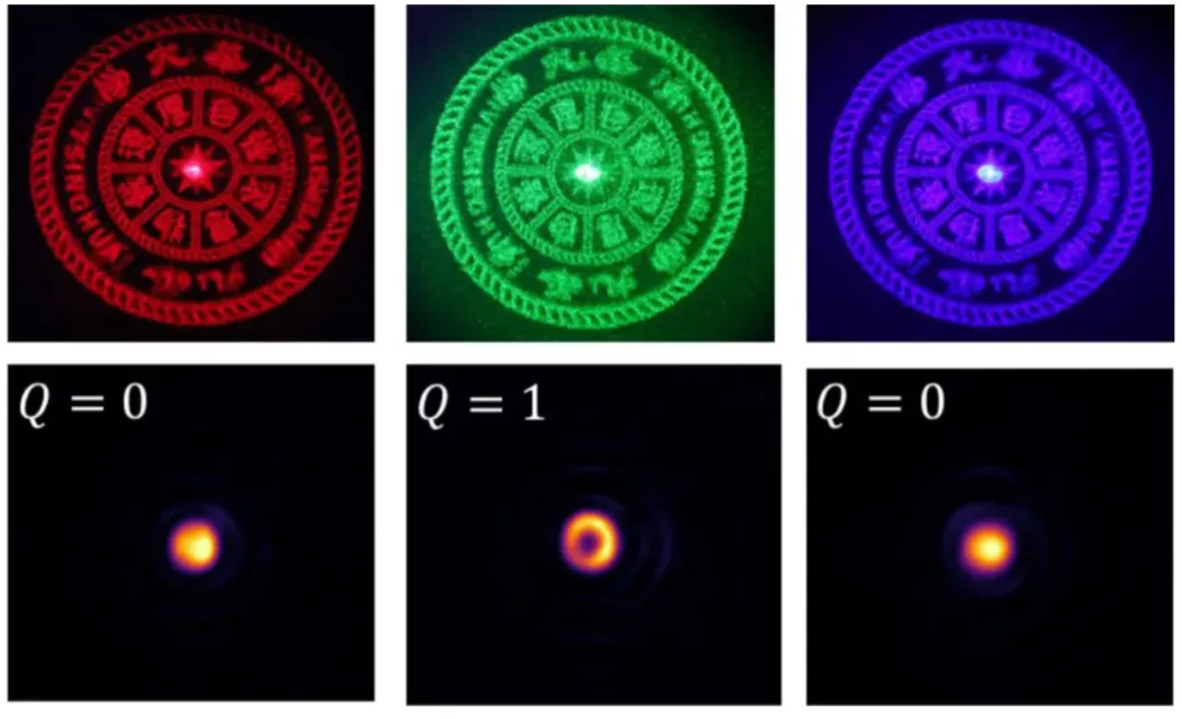 bic处实现波前调控。通过几何相位编码形成的全息图具有宽带特性(上),而由bic拓扑产生的涡旋光具有窄带特性