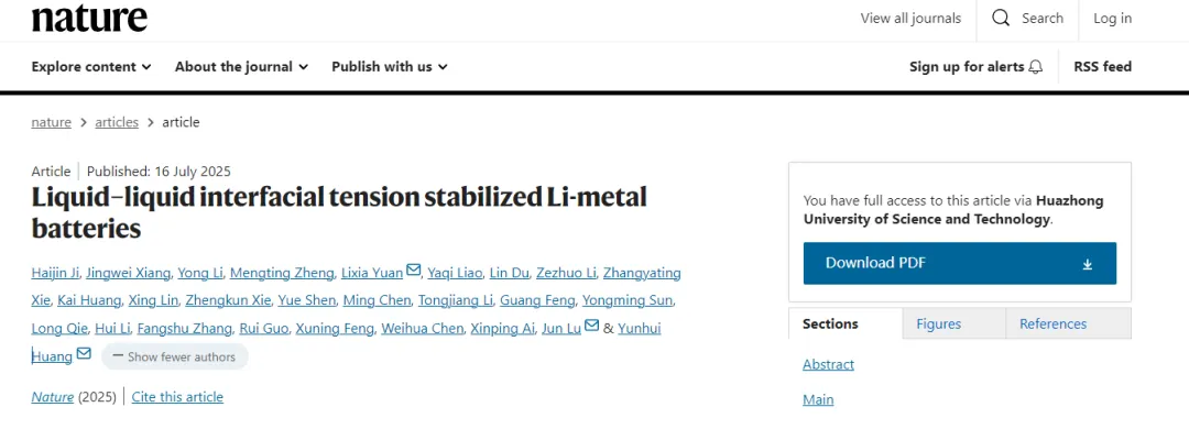 新能源汽车、无人机、机器人等领域对锂电池能量密度、稳定性、安全性提出了越来越高的应用需求,如何实现电池高能量密度下的高稳定和高安全(“三高”)是学术界和产业界长期面临的巨大挑战。7月16日,《自然》(nature)在线刊发了中科技大学材料学院、材料成形与模具技术全国重点实验室动力与储能电池团队黄云辉教授和袁利霞教授题为“液-液界面张力稳定的锂金属电池”(liquid-liquid interfacial tension stabilized li metal batteries)的研究论文。团队提出了破解锂电池“三高”难题的新策略。